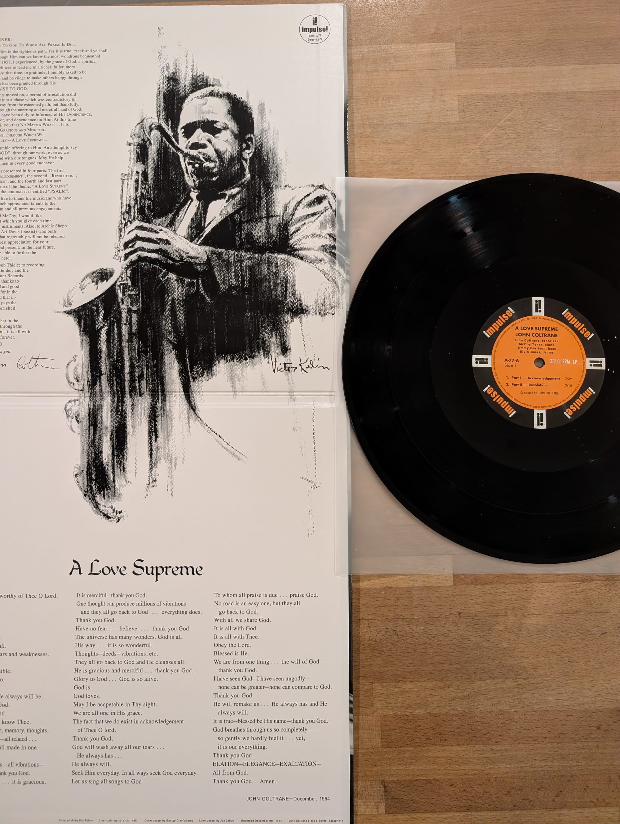 If there is a complaint to be made about either newer pressing of A Love Supreme, it's the lack of liner notes or any discussion of session dates, players, etc. There's surely much more to spell out for new listeners about Coltrane's apology to Dolphy and Davis for not including their contributions on the finished LP. (Their performances on an alternate take of opening track “Part I: Acknowledgement,” recorded the day after the album version, would be added to later deluxe reissues.) The thinking may simply have been that there has been enough ink and pixels spilled about A Love Supreme and there will most certainly be more once Coltrane's centenary is upon us.