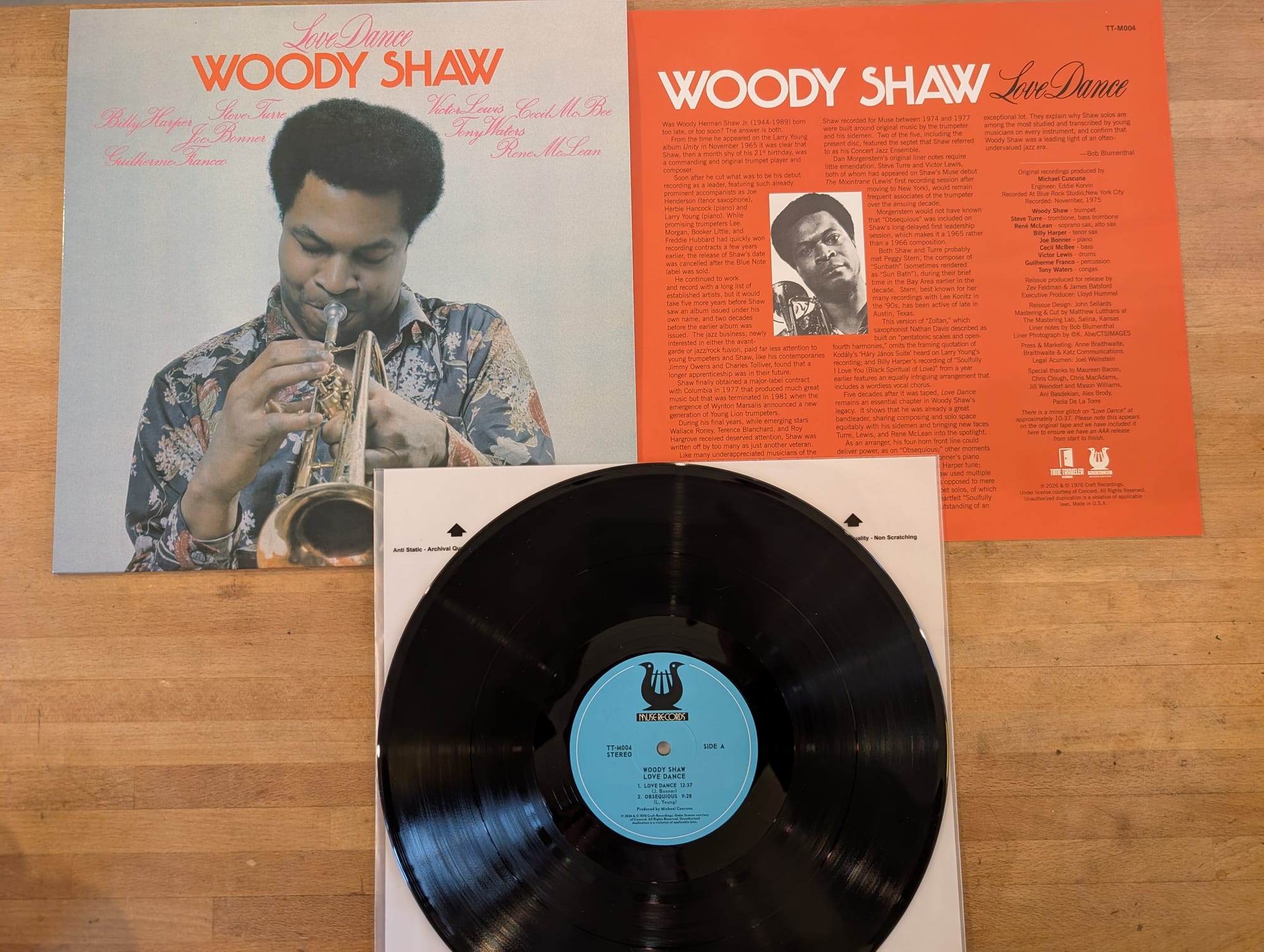 The more immediate pleasures are to be found on Love Dance. Recorded at Blue Rock Studio in 1975 with producer Michael Cuscuna, the album is one of nine LPs that Shaw made for Muse in and around his work for bigger labels like Columbia and Elektra. And it’s one of a pair of records the trumpeter made with what he called his Concert Jazz Ensemble, a deft octet that included, among others, pianist Joe Bonner, bassist Cecil McBee, and trombonist Steve Turre.