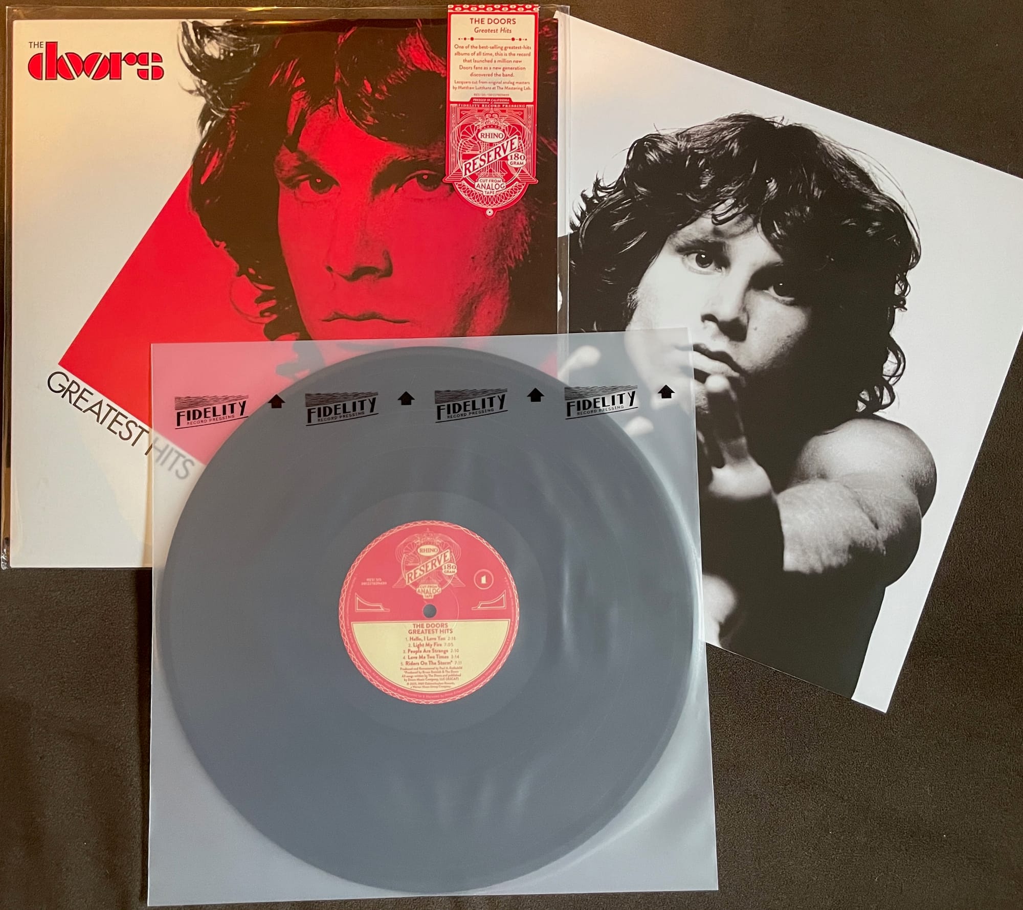 What’s a little easier to nitpick is the necessity of a high-quality, all-analog reissue of Greatest Hits, newly part of the premium Rhino Reserve line. Is this for hardcore fans who already know these songs by heart? Because vinyl-loving Doors fans with cash to burn have already had it pretty good. Analogue Productions did a 45 RPM series of the classic six albums back in 2012, and then repressed them in 2020; those versions are still in print. AP’s all-analog cuts could have been the final word on the subject of Doors vinyl, but last year Rhino High Fidelity did new all-analog cuts for a 6-LP, 33 RPM box set, with the individual titles receiving stand-alone releases separately earlier this year.