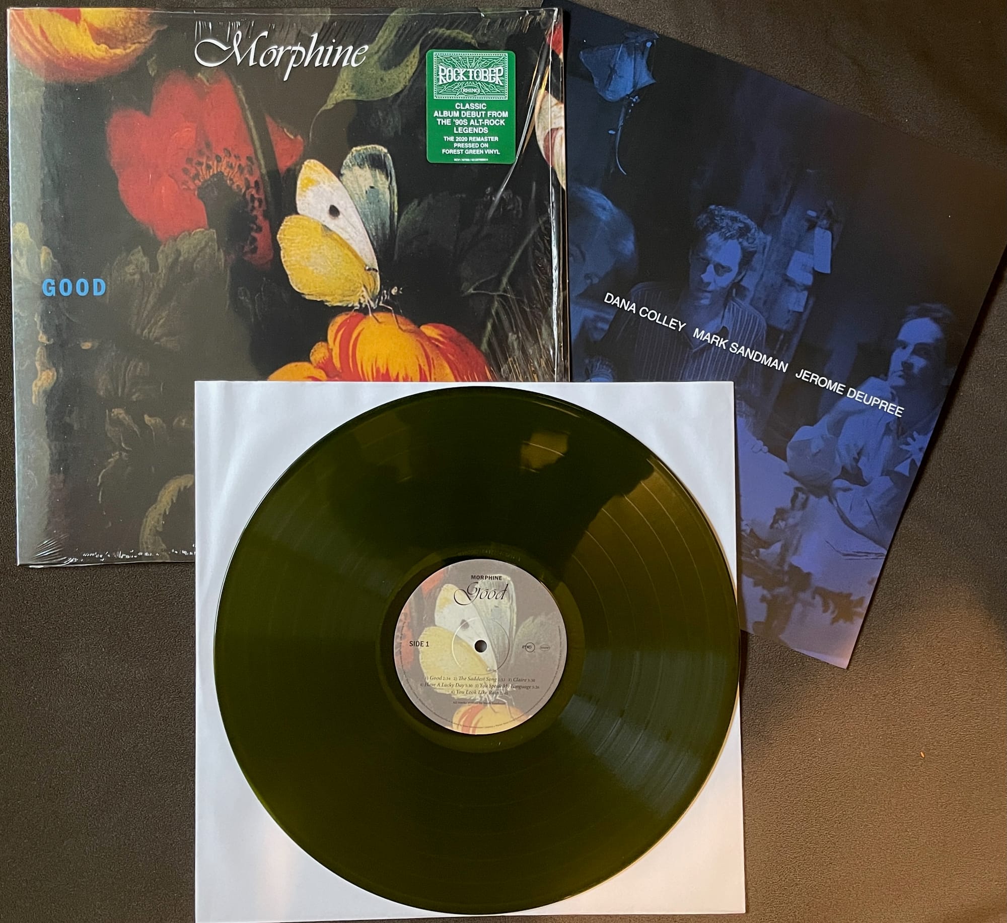 The package is pleasing, too, although the cover art looks pretty low-rez, perhaps unavoidably. There’s an insert with lyrics and credits, and the disc comes inside a polylined sleeve, hooray. My only problem comes from the pressing itself, done at GZ’s Memphis facility, with my particular copy playing with a bit of surface noise. It’s minor, so minor that I almost hesitate mentioning it, but hey, that’s what a review is for. When the music fully blossoms, it’s not an issue. But during the silence between songs and the quieter passages, it’s like trees rustling in the background—perhaps apt for the forest-green vinyl, but not an ideal Morphine listening experience.