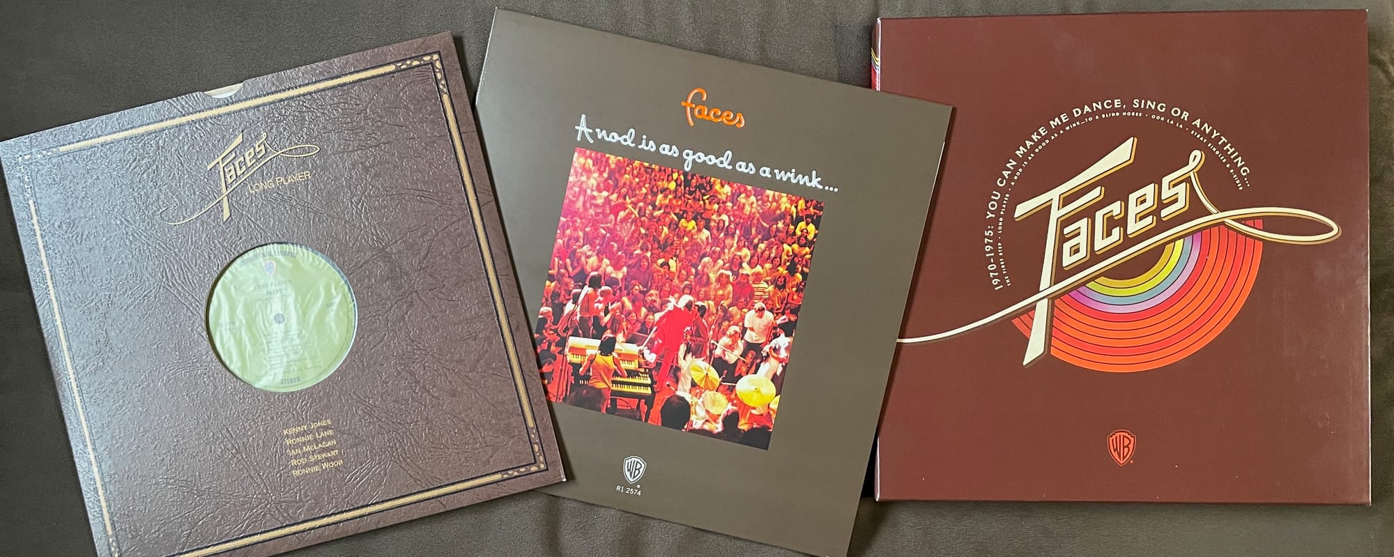 I also compared them to the pressings in the You Can Make Me Dance, Sing or Anything box set from 2015, which were cut by Kevin Gray at Cohearant Audio; it’s widely believed that these were cut from the analog masters as well. These are splendid renditions that have received raves from Faces fans, and I have always been more than happy with them, although the MPO pressings in my copy of the box are not perfect (Long Player is pressed distractingly off-center, for example). The Gray cuts have a decided strength: They offer more separation between the different instruments, with substantially more space and definition around them.